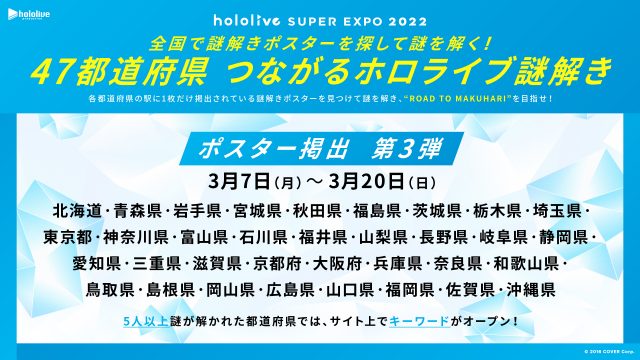 「日本全国、つながるホロライブ!47都道府県謎解き」謎解きポスター第3弾掲出開始!