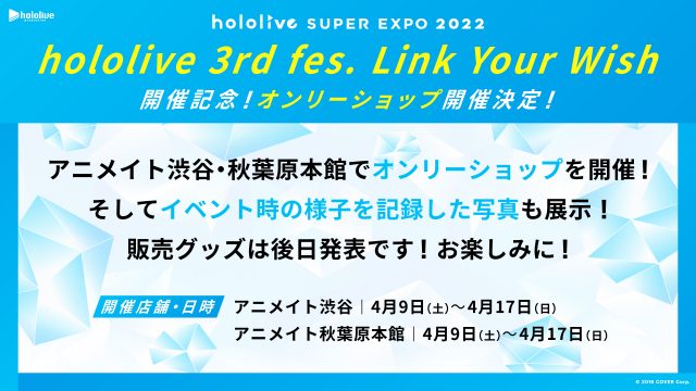 「hololive SUPER EXPO 2022 開催記念オンリーショップ in animate」詳細公開!