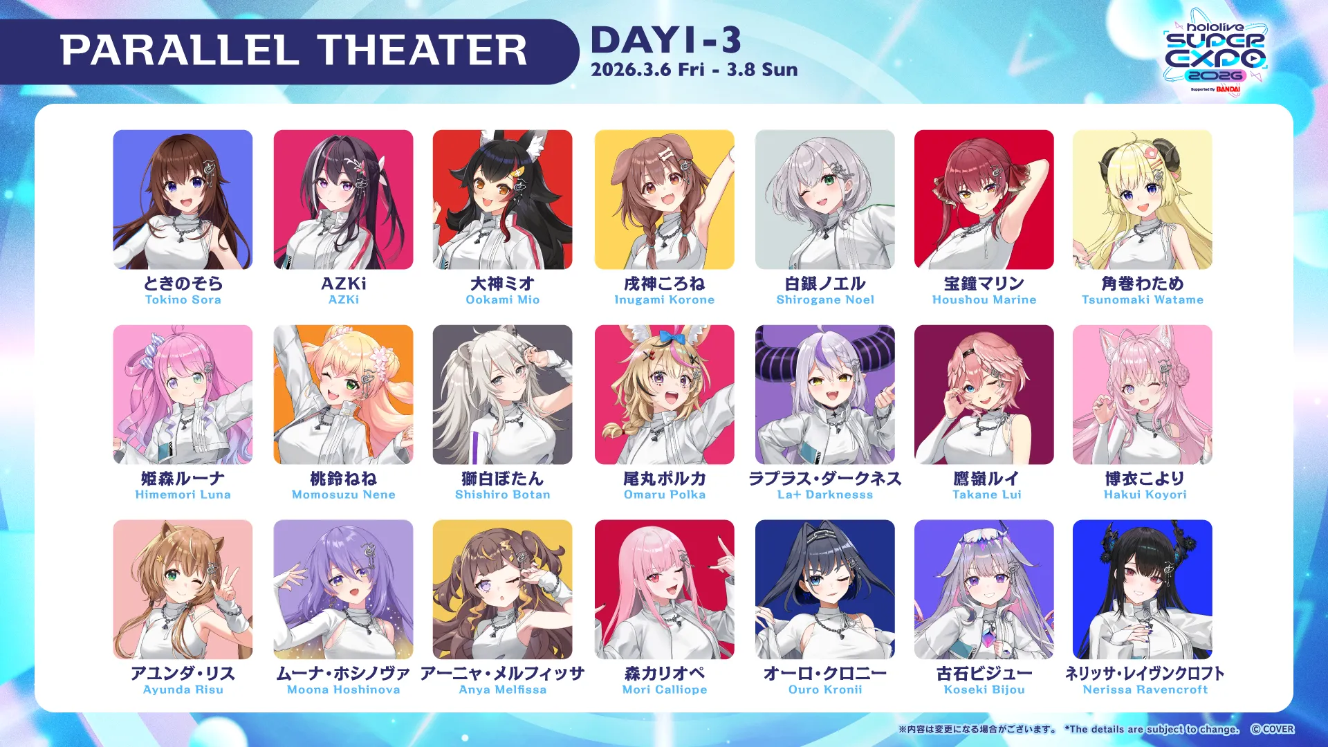 Details about “PARALLEL THEATER,” featuring 3D live performances selected by hololive members, are now available.Make sure to have your penlights ready and enjoy memorable 3D live performances chosen by 21 participating members on the big screen!